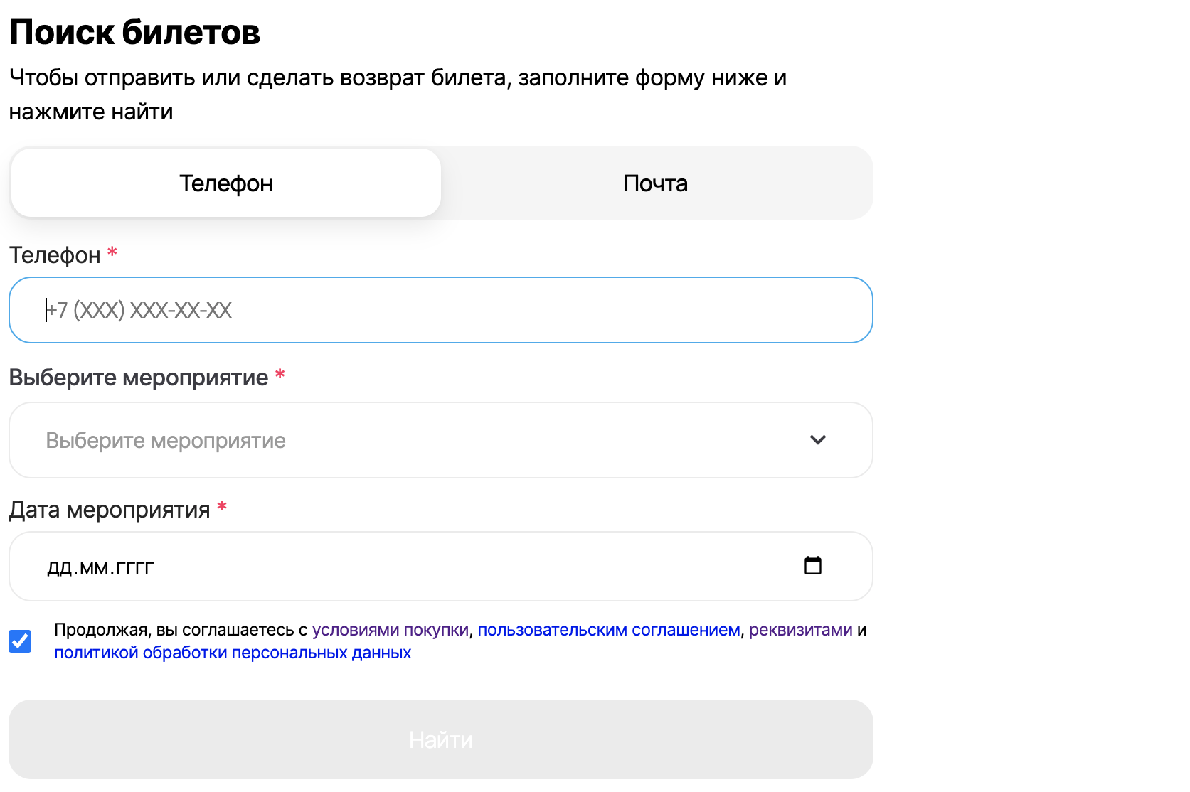 Зрителям стало проще находить, переотправлять или возвращать билеты. Доступ к информации о заказах можно получить по телефону или электронной почте. Пользователю отправляется проверочный код для подтверждения личности. Для получения кода по номеру телефона воспользуйтесь Telegram-ботом. Кинотеатрам, размещающим информацию о порядке переотправки и возврата на своём сайте, необходимо обновить ссылку. Актуальную ссылку можно найти, нажав кнопку «Мне не пришел билет» на сайте или в виджете.